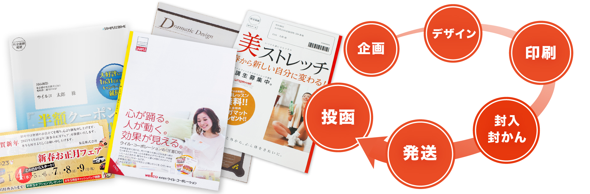 企画・デザイン・印刷・発送の中から必要な工程だけを自由にセレクト。予算や目的に合わせた最適なDM制作を提供します。