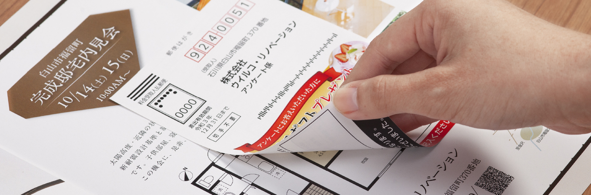長年のDM制作実績をもとに、データ分析に基づいた戦略提案や高品質なデザインを提供。開封率を高める特殊加工(飛び出す加工、シール加工など)にも対応しています。