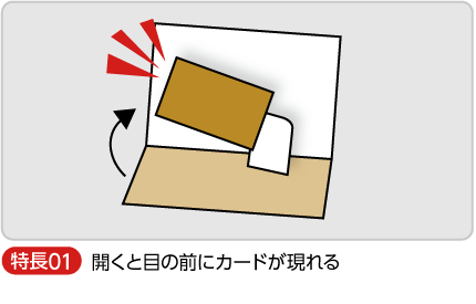 紙フォルダを開くと、カードが目の前にお洒落にポップアップ!
