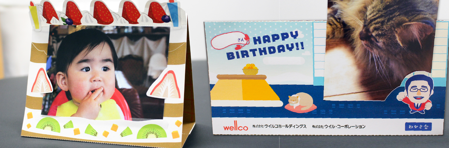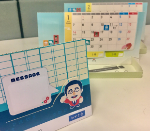 誕生日や勤続年数などの記念グッズとして、カレンダーなどと組合せながら、毎年少しずつ形を変えて使用しています。社長が自らメッセージを添えられるので、社員はなかなか捨てられないですね。
