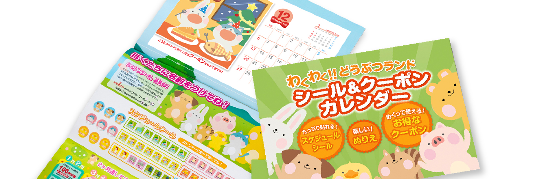 シール+クーポン+カレンダーの一体型で製造できるコストメリットも魅力です。