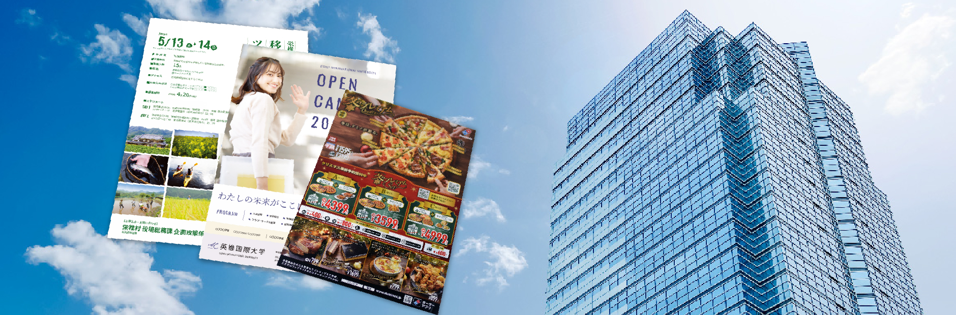 チラシ・広告物の企画・制作から、発送まで対応可能です。