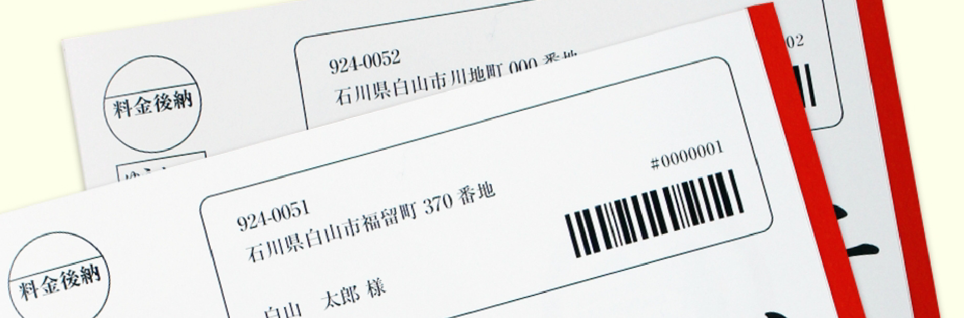 大量のDMや封筒等に宛名を迅速かつ正確に印刷するサービスです。