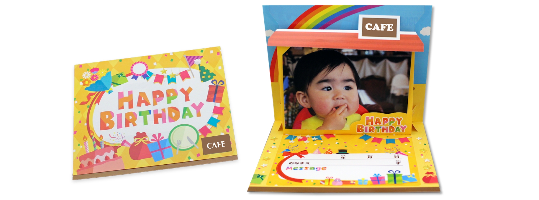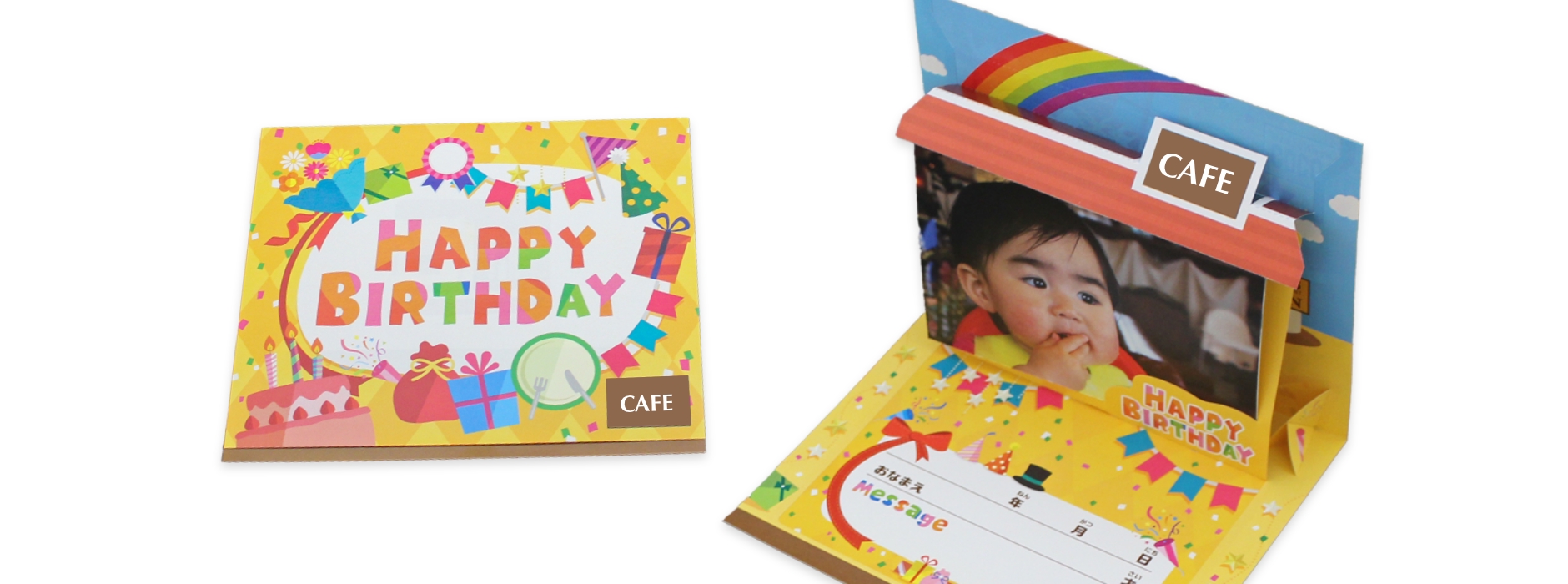 ⇒立体的な形状にメッセージ欄などを組み合わせ、楽しい思い出と店舗を結びつけられ、再来店を喚起できる。