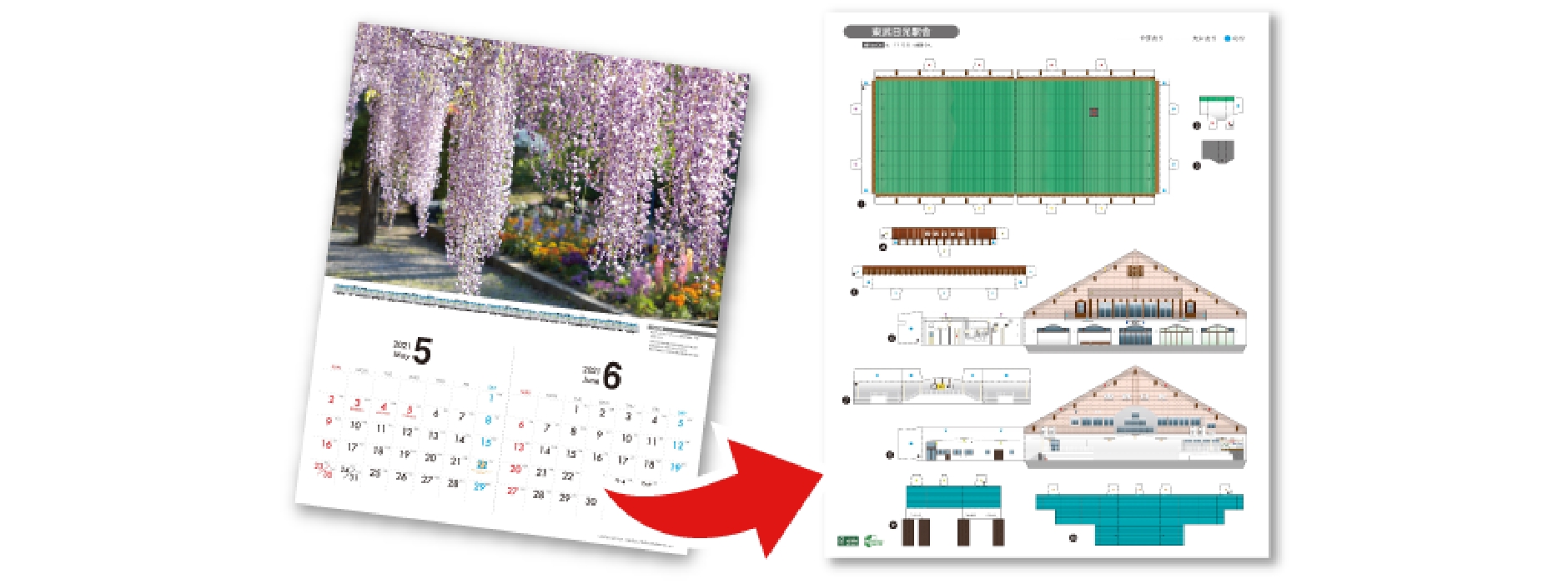 2ヶ月ごとに完成に近づくペーパークラフト付きカレンダー