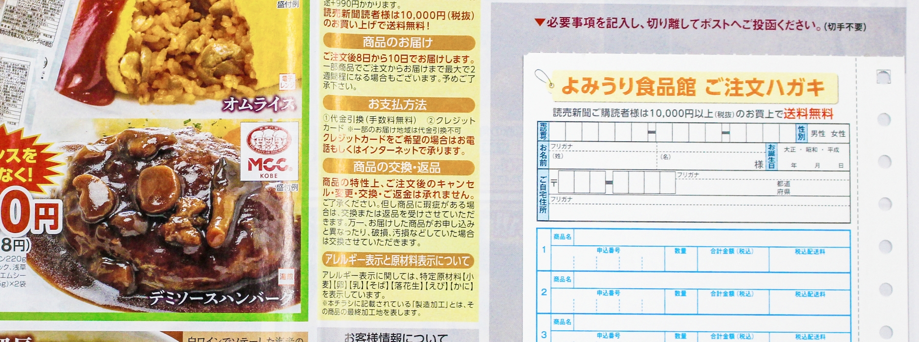 チラシにはがき(アドアカード)が付いていて注文の際にわかりやすい