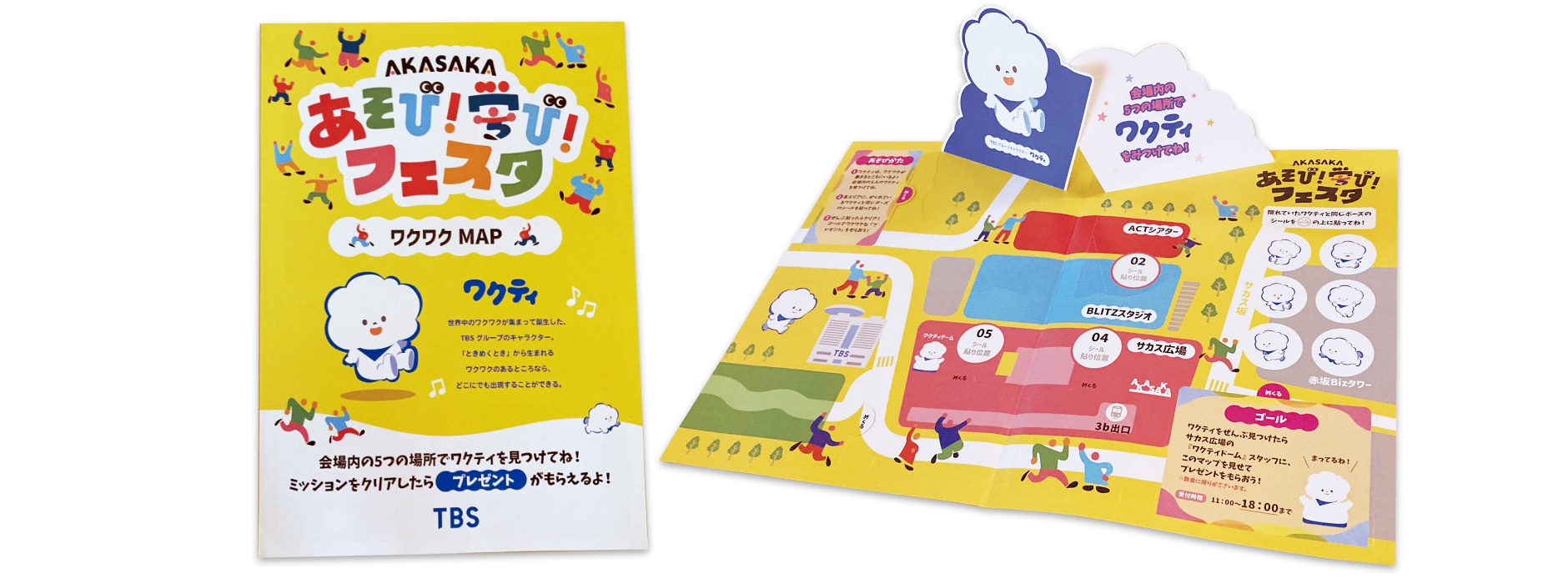 ⇒ TBSの企業キャラクター「ワクティ」を全面的に起用し、親しみやすいデザインを実現。子供たちが夢中になる体験設計と、親子で楽しめる要素が満載。