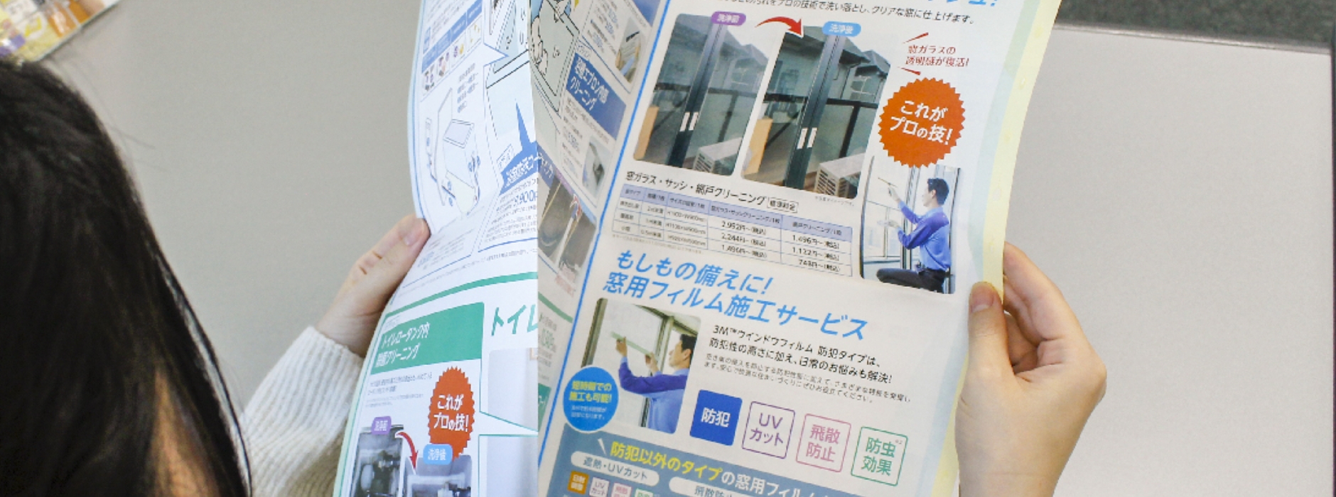 「今までにない形態のDMでしたが、コストや手間が省けて、大変助かりました。イラストを多く掲載できたおかげで、ハウスクリーニングが明るい印象になったのも良かったです。」